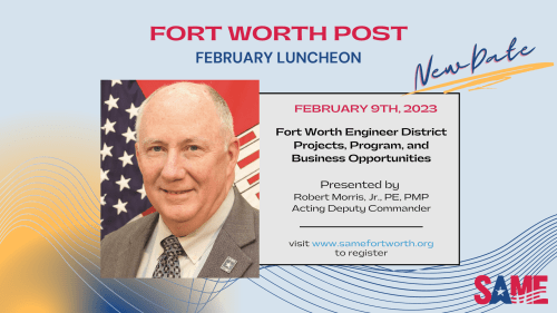 Out of abundance of caution, we are postponing our February Member Meeting featuring our annual USACE Fort Worth Projects, Program, and Business Opportunities briefing to February 9th.