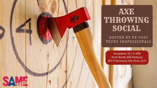 Everyone is welcome! Please join us for Axe Throwing at the Fort Worth Axe Factory. This fun, SAME-sponsored event is hosted by the FW Post Young Professionals. The event is COMPLIMENTARY and is BYOB. Register at the Eventbite link below: