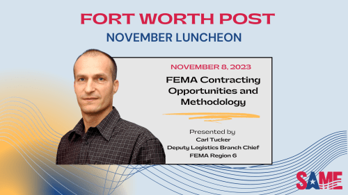 Sign up to give your Company Elevator Pitch at this meeting! With the intent of making it easier on sustaining members to coordinate the month/ date they will be able to give their annual company elevator pitch, the SAME Ft Worth Chapter will open up a new Eventbrite sign up page located on the Chapter webpage. The number of speaking firms per month will be limited to 5 so once “tickets” are sold out firms will need to choose another open month.