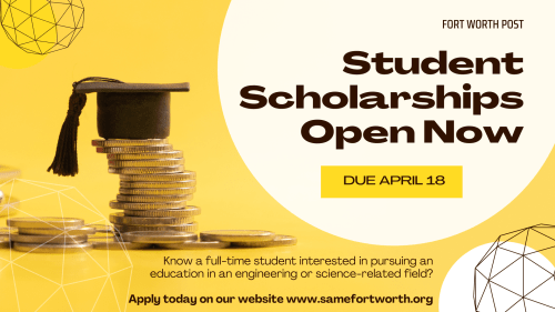The Society of American Military Engineers (SAME) is a non-profit professional engineering association headquartered in Alexandria, Virginia, with chapters (called posts) worldwide. Its mission is to bring together professional engineers and those in engineering-related fields to improve and increase the engineering capabilities of the nation; and to exchange and advance the knowledge of engineering technologies, applications, and practices. Each year, the Fort Worth Post of SAME provides college scholarships to deserving students who are interested in pursuing an education in an engineering or science related field to help begin this education and mentoring process.