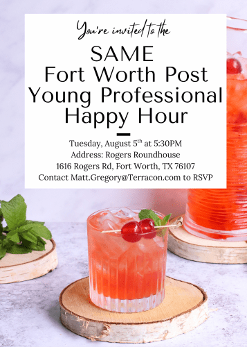 Join us for the next YP Happy Hour – 5 August By daniellebarner on July 15, 2025 All are welcome!! Share this: Click to share on X (Opens in new window) X Click to share on Facebook (Opens in new window) Facebook Click to share on LinkedIn (Opens in new window) LinkedIn Click to print (Opens in new window) Print Click to email a link to a friend (Opens in new window) Email Like Loading...‹ Registration is open for the DFW Annual Clay Shoot – 12 SeptemberRegister today for the 2025 Resilience Workshop – 6 August ›Categories: EventsTags: networking, young professionals