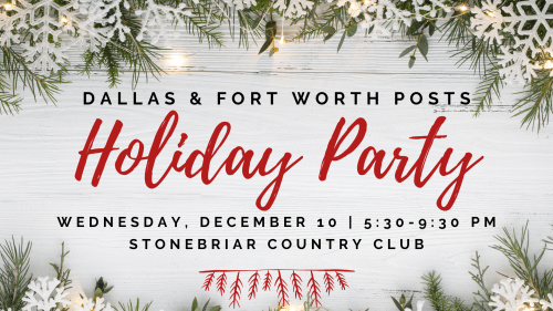 Holiday Party Information: Wednesday, December 10, 2025, 5:30 PM to 9:30 PM, Stonebriar Country Club, 505 Country Club Drive, Frisco, TX 75034