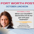 TIME:10:30 a.m. Board Meeting11:30 a.m. Registration12:00 p.m. Lunch and Program LOCATION:“777 Main” Petroleum Club | 40th Floor777 Main Street | Fort Worth, Texas COST:$35.00 Full Buffet$30.00 Young Members PARKING:$6.15 On-Site Parking(with validation) 2023 Sustaining Member Presentations Sign up to give your Company… Read More ›