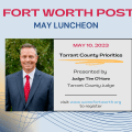 Please join us for our May 10, 2023 General Member Meeting Topic: Tarrant County Priorities and Agenda Featured Speaker: Judge Tim O’Hare A fifth-generation Texan and lifelong resident of the DFW area, Tim O’Hare has devoted his career to improving… Read More ›